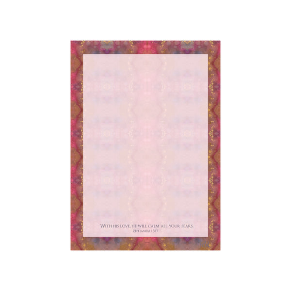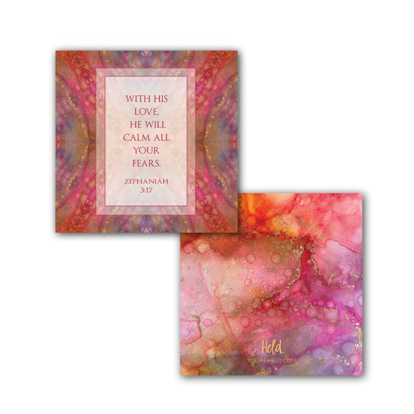 "For the Lord your God is living among you. He is a mighty savior. He will take delight in you with gladness. With his love, he will calm all your fears. He will rejoice over you with joyful songs." Zephaniah 3:17