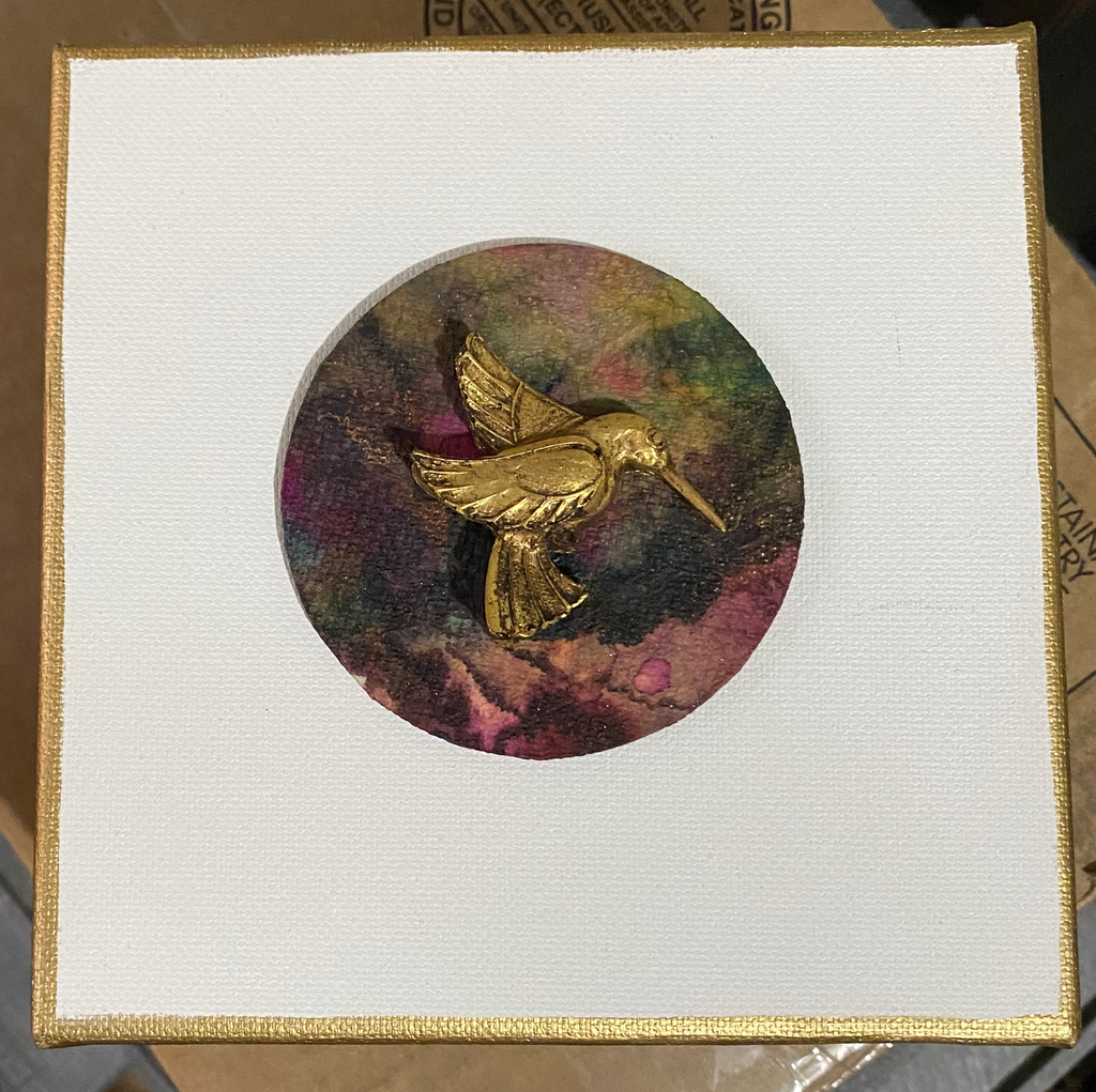 6 x 6 x 2 Canvas original alcohol ink and gold leaf.